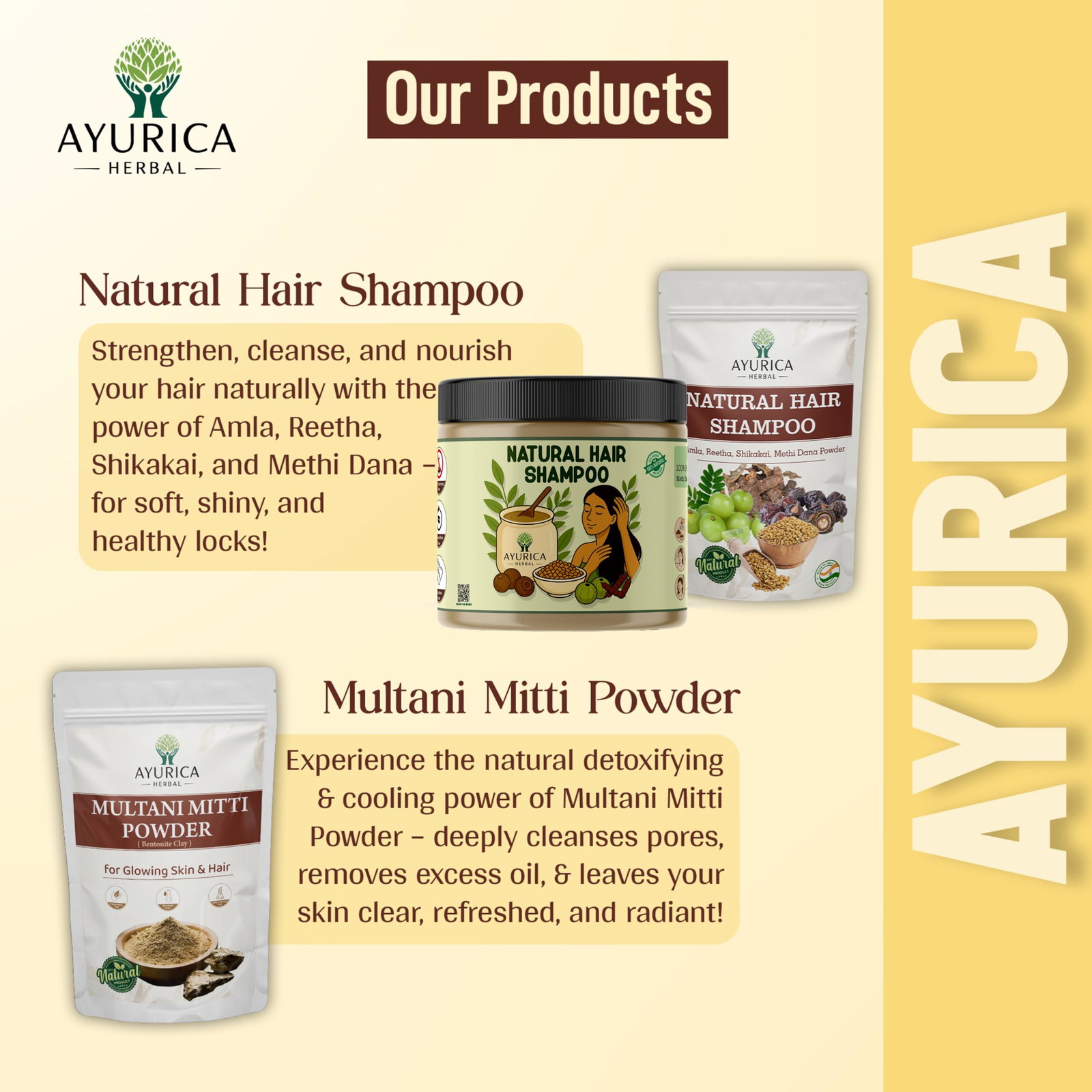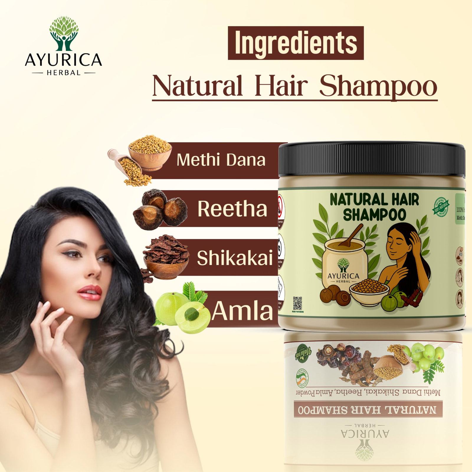Ayurica Herbal Natural Hair Shampoo Powder is a traditional Ayurvedic hair cleanser made with a powerful blend of Amla, Reetha, Shikakai and Methi Dana.
